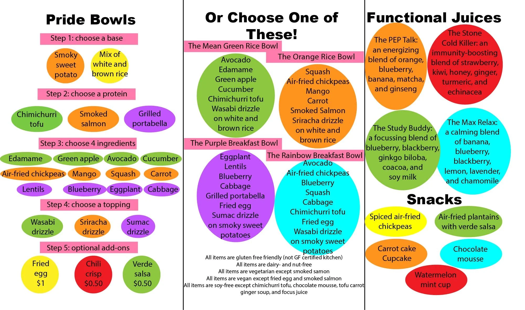 The menu has not yet been finalized, but here is a sneak peek! We will start small at the farmer’s market with only a small selection of items. From there we will add on until we have the full menu available.
